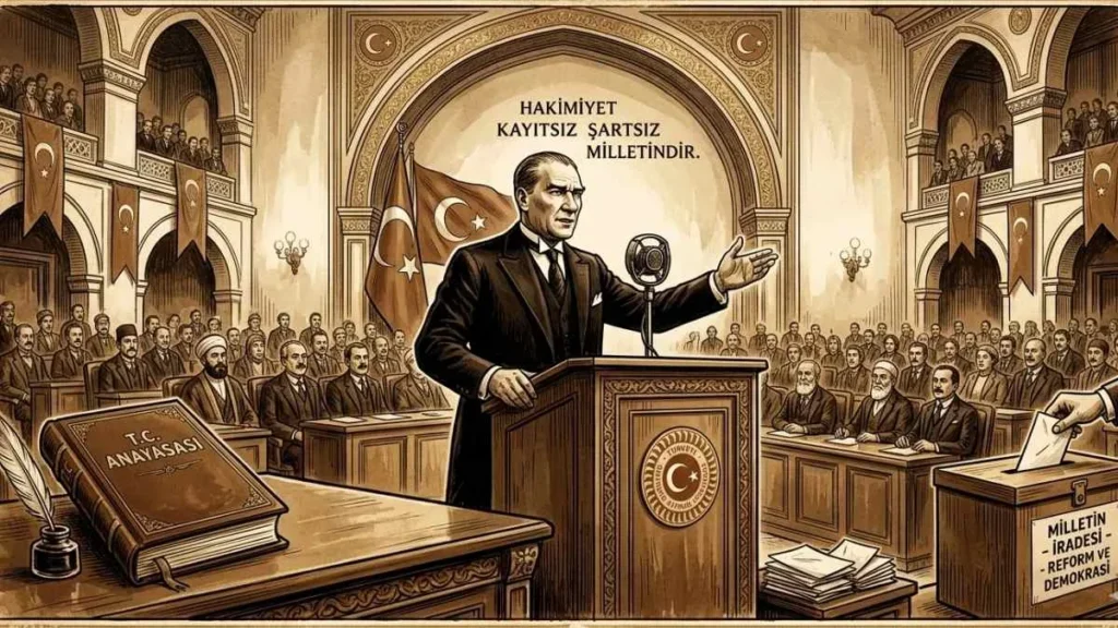 Cumhuriyet represents the transformation of Turkey into a sovereign republic built on democratic principles and civic rights. Established in 1923 under Mustafa Kemal Atatürk, it replaced imperial rule with constitutional governance centered on the people.