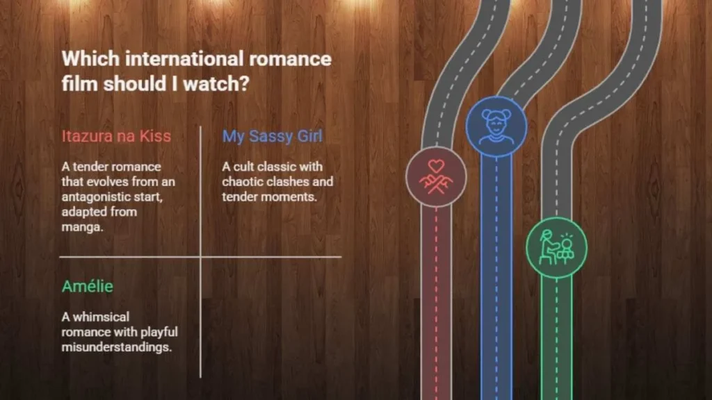 - Amélie (2001, France): Playful misunderstandings create whimsical tension before romance blooms.