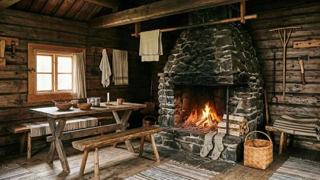 Tiimatuvat were not built for display. They were built for a purpose. Farmers, craftsmen, and families used these cabins during seasonal farming, fishing trips, and collective projects. The open interior allowed multiple people to work, eat, and rest in one heated space. Fireplaces were positioned at the center, symbolizing warmth and unity.